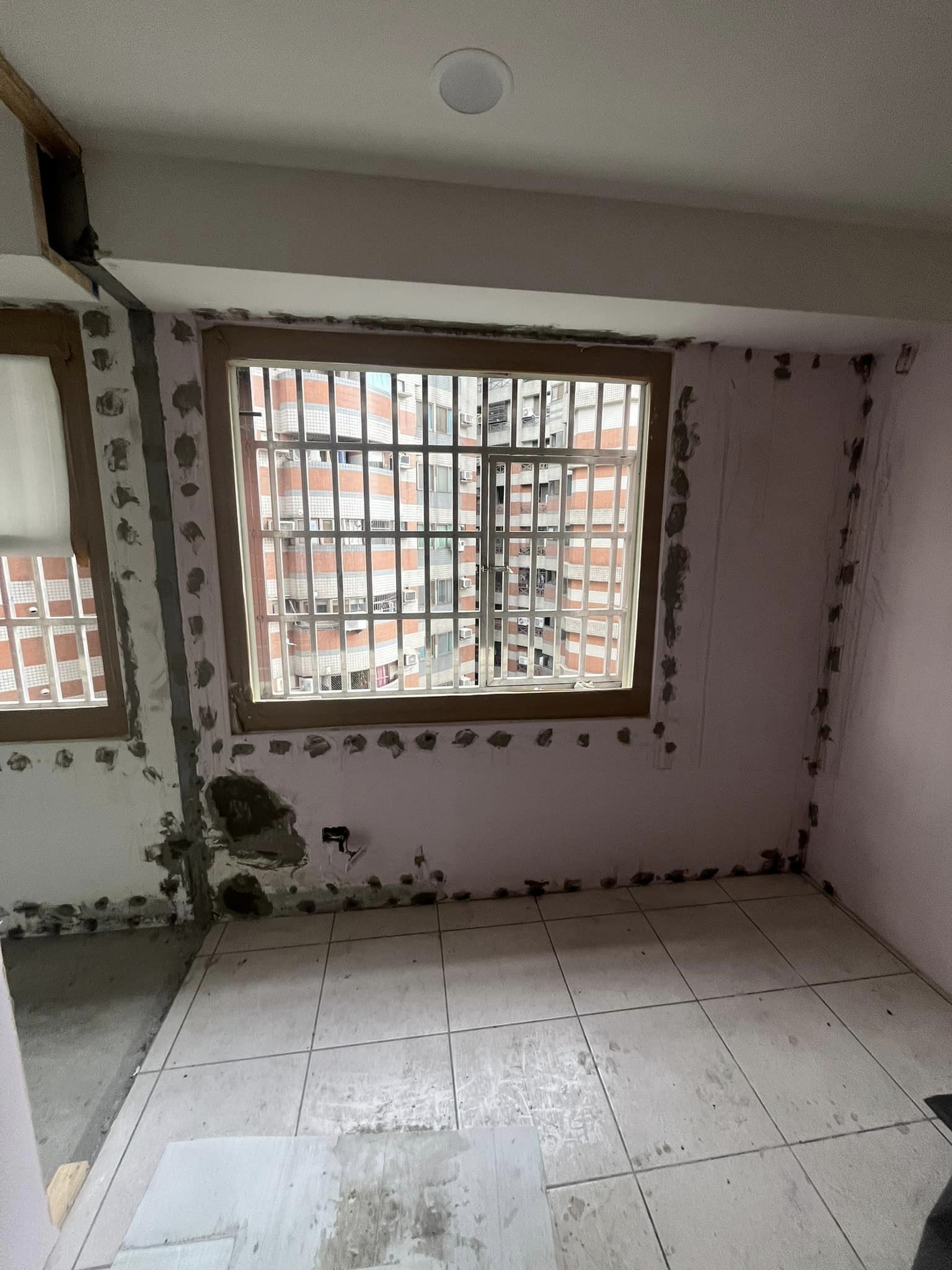 窗框及外牆老舊磁磚膨拱漏水